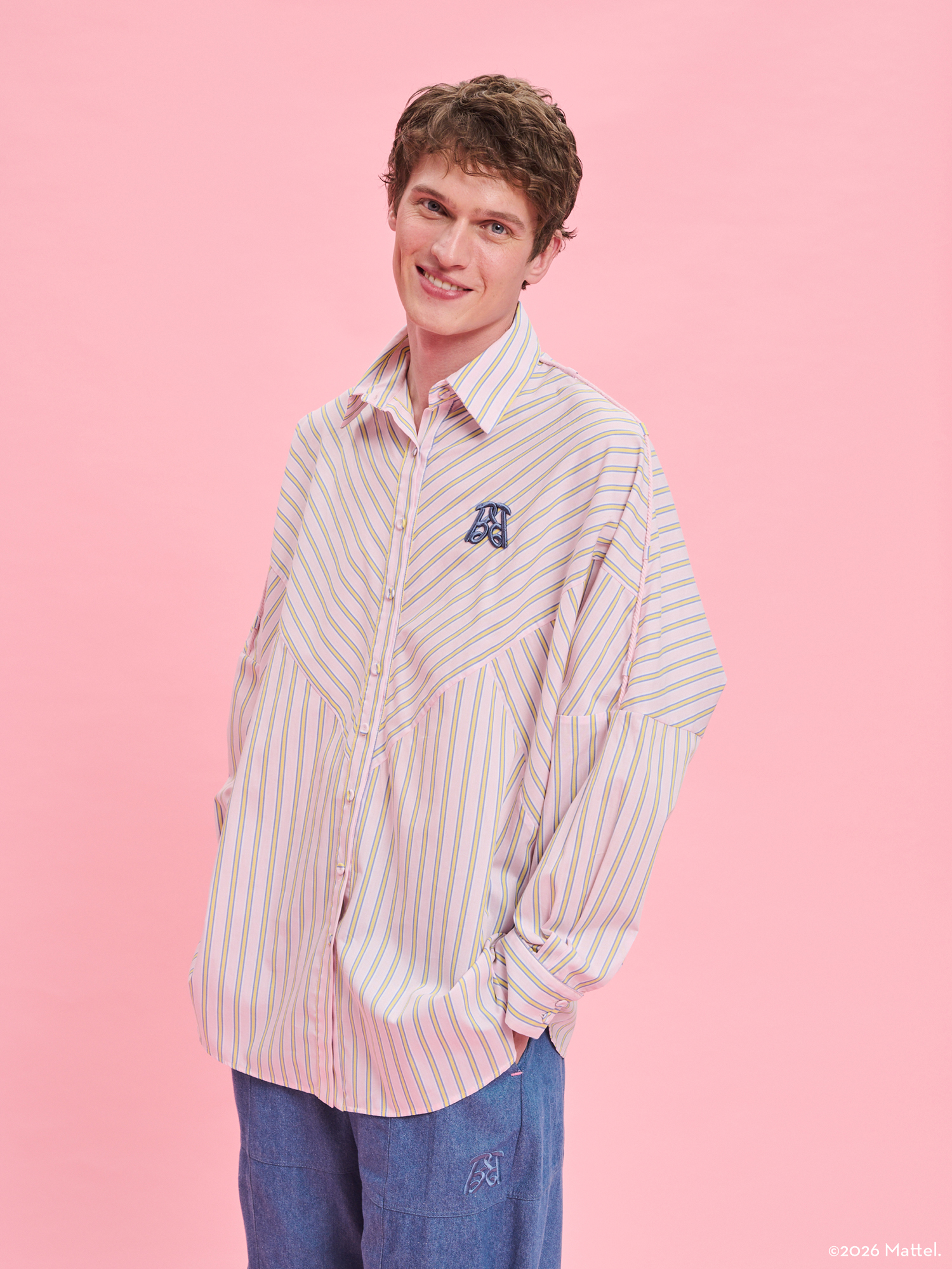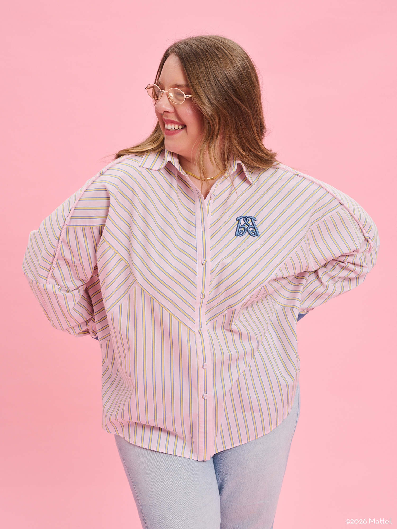 Το Barbie X PROJECT SOMA Positivity Shirt κατασκευάζεται από ριγέ ποπλίνα ύφασμα. Oversized πουκάμισο με διακοσμητικές ραφές και κορδόνια στους ώμους.