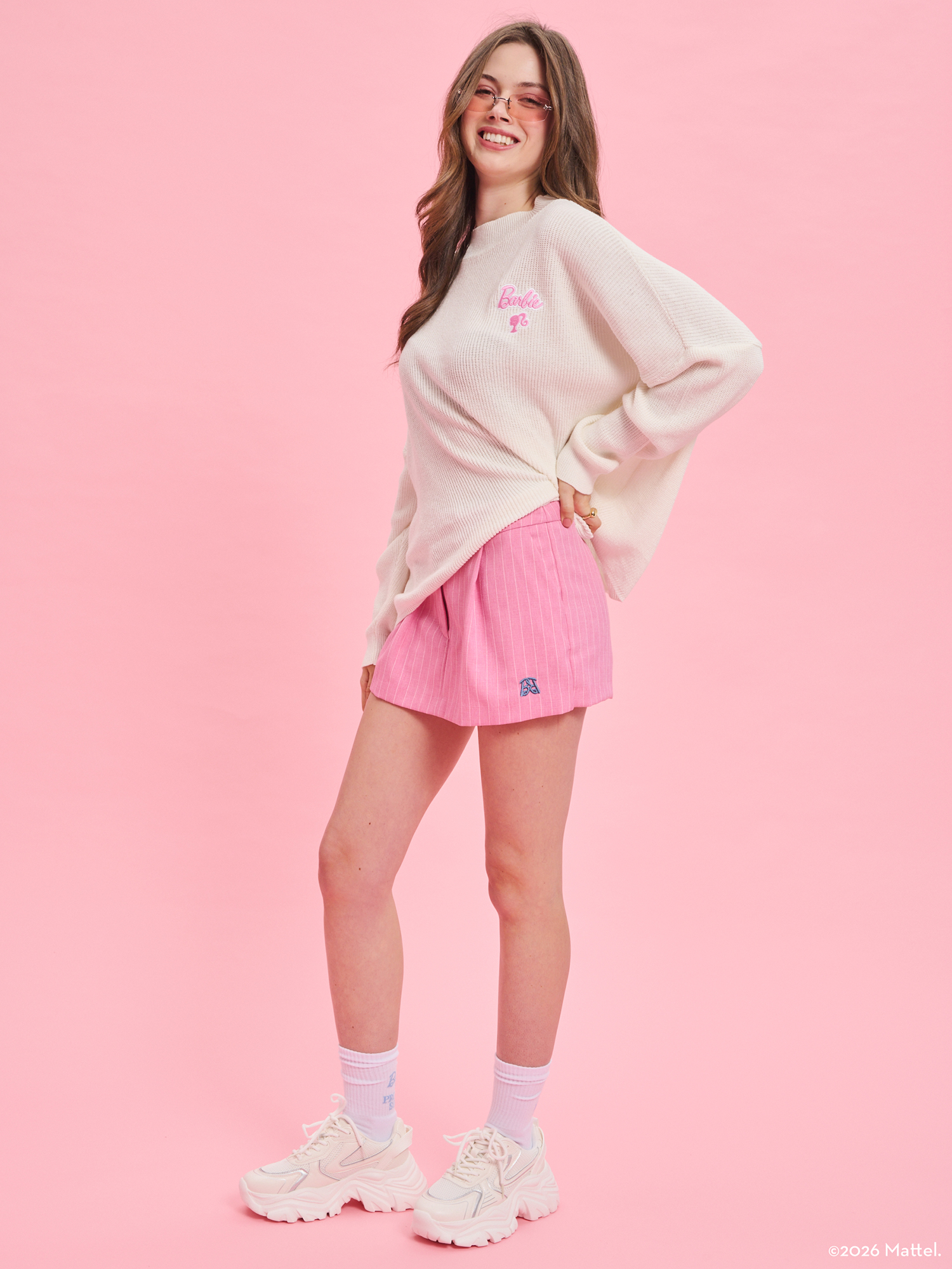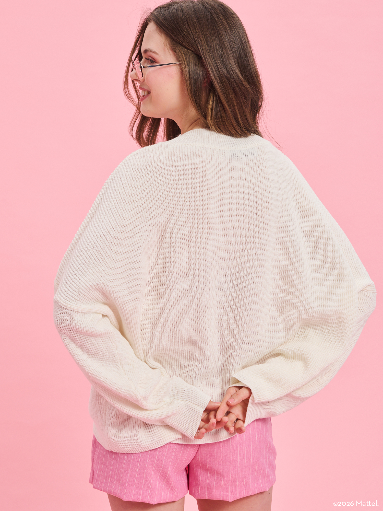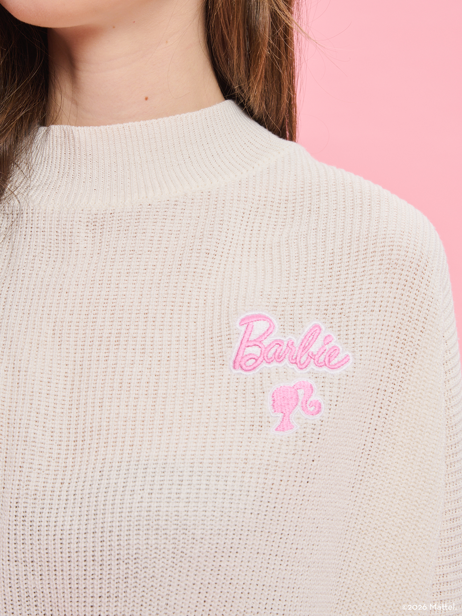 Το Barbie X PROJECT SOMA Becoming Off-White Sweater κατασκευάζεται από απαλό, πλεκτό νήμα. Oversized πουλόβερ με ιδιαίτερη λαιμόκοψη και κέντημα στο στήθος.