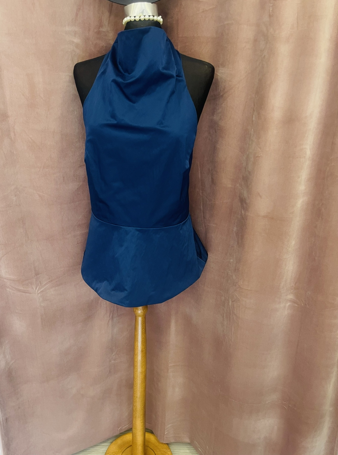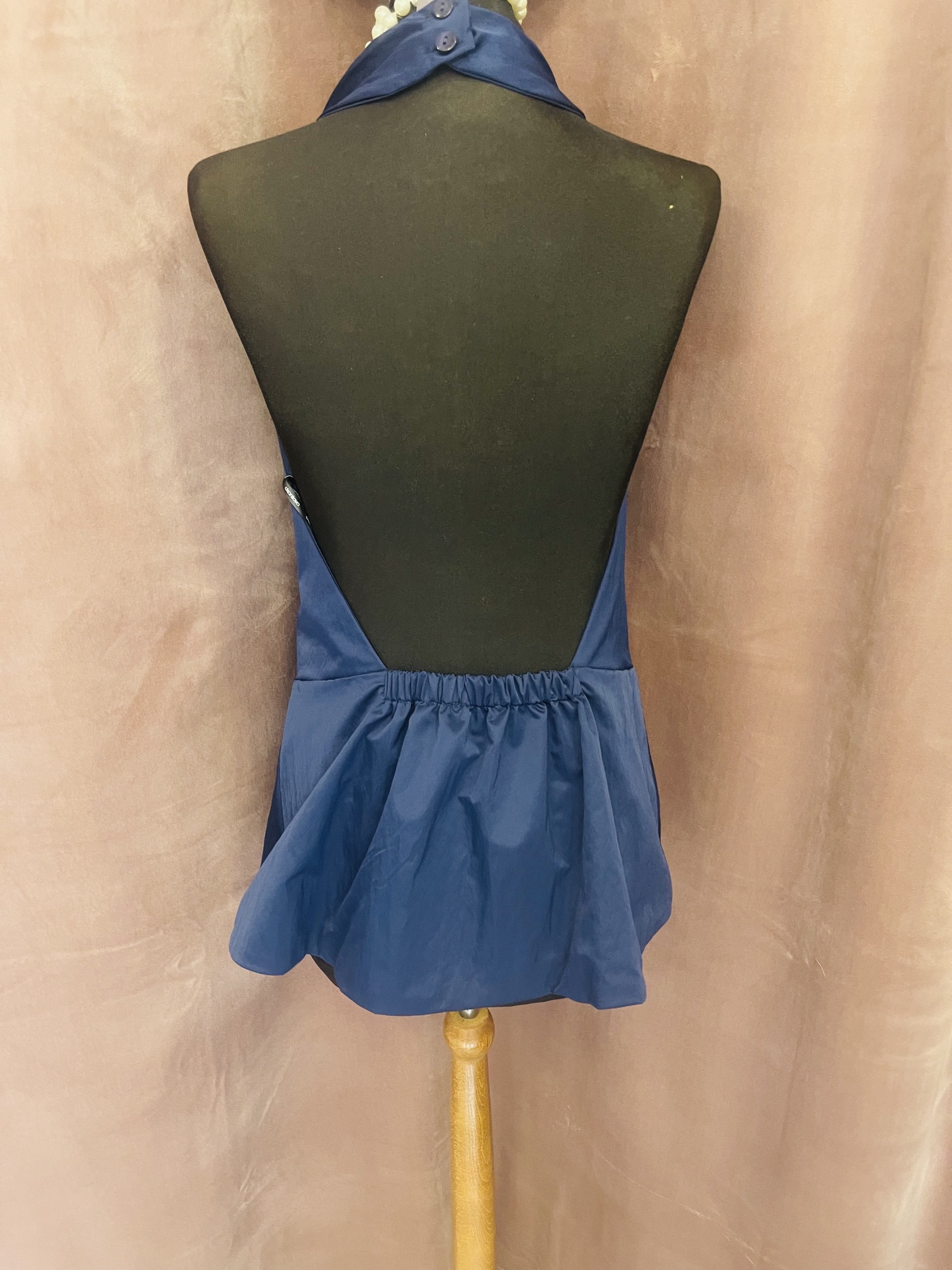 BLUE HALTER DRAPED TOP-CKONTOVA