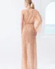 Maxi φόρεμα σε one-shoulder γραμμή, διακοσμημένο με παγιέτες και ανάγλυφη υφή που χαρίζει πολυτελή λάμψη. Το ιδιαίτερο μανίκι προσθέτει ένταση στο design, ενώ η εφαρμογή αγκαλιάζει κομψά τη σιλουέτα.