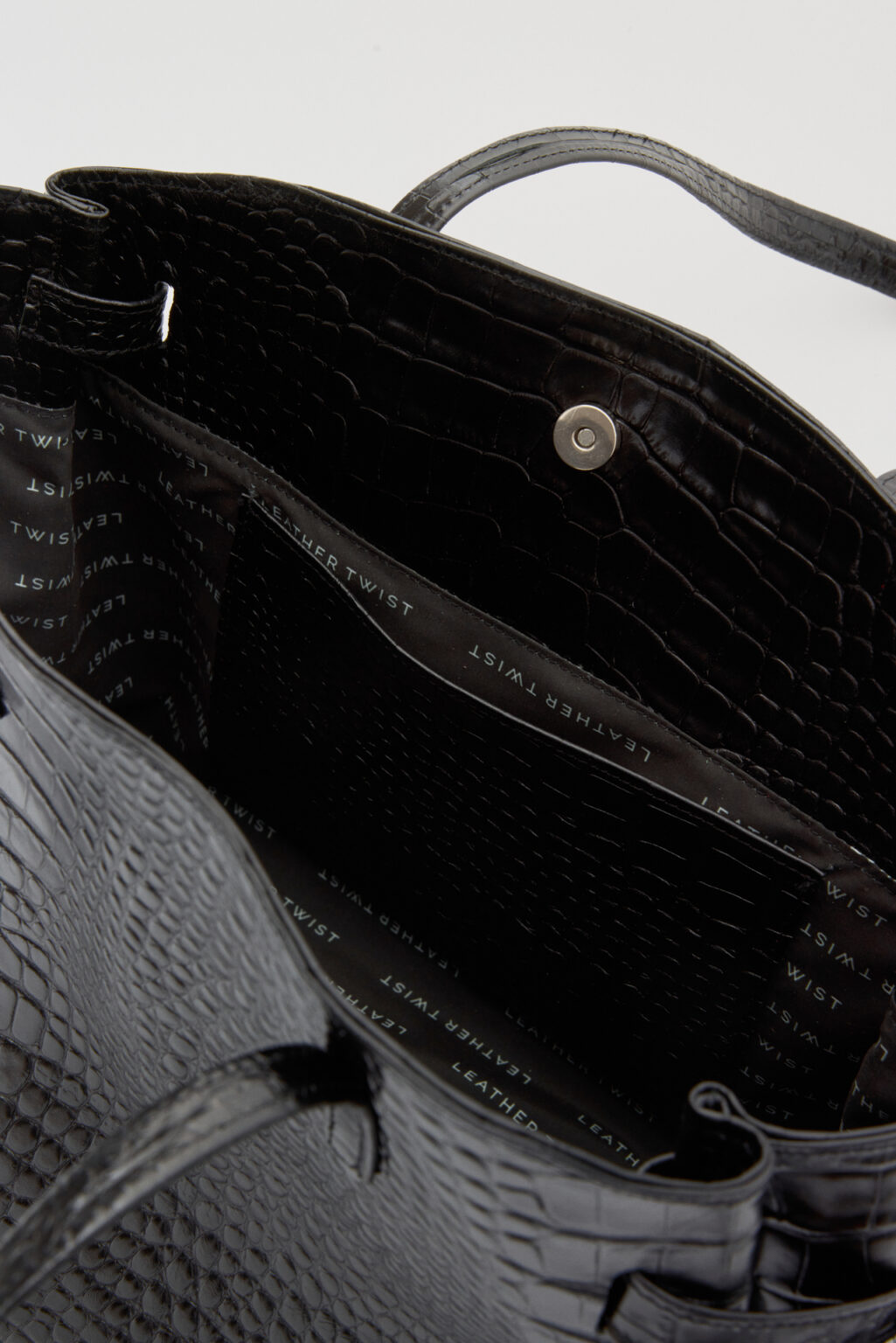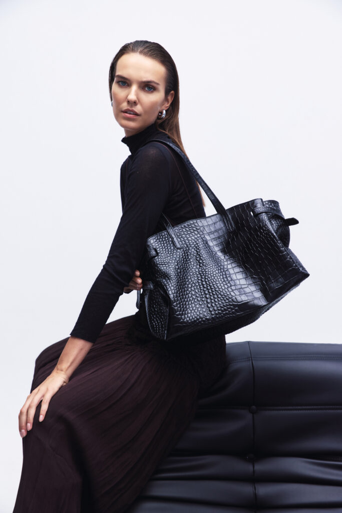 LORENE ΔEΡΜΑΤΙΝΗ SHOPPER ΤΣΑΝΤΑ ΜΑΥΡΗ ΚΡΟΚΟ
