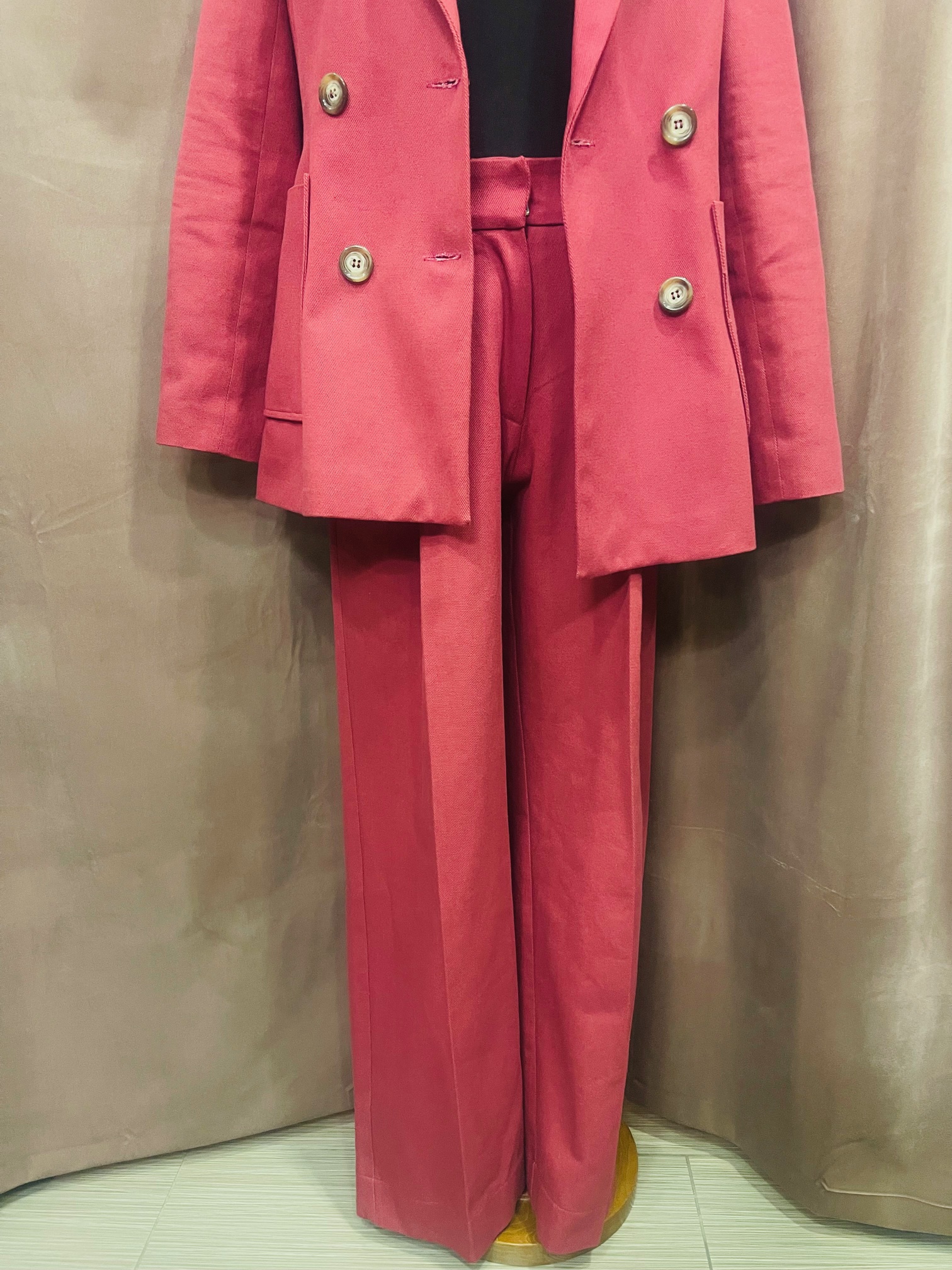 A sharp wardrobe essential by ckontova, these tailored trousers are cut in a clean straight-leg silhouette with a flattering high-rise waist. Finished with front pleats and a crisp pressed line, they bring structure and polish while remaining easy to wear from day to night. Style them with a simple tee for modern minimalism, or pair with the matching vest/blazer for a refined suiting look.